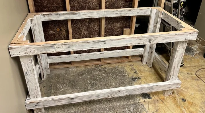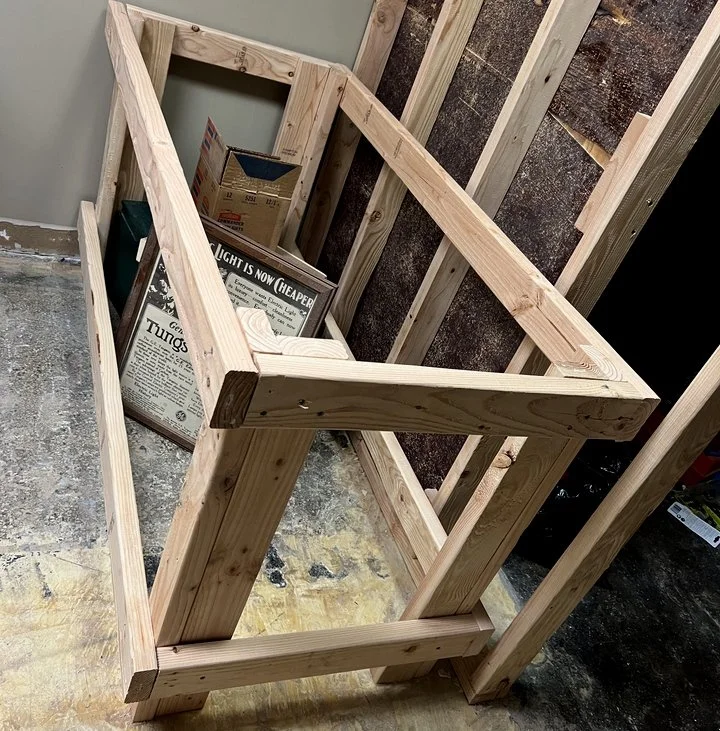 For our new Columbus, Ohio escape room adventure, we needed two work benches as part of the game’s set in order to tell our story. After some research into the best build for our benches that need to be heavy-duty and look like they’re from a 1920s laboratory, we constructed the frames completely out of new, 2x4 lumber.